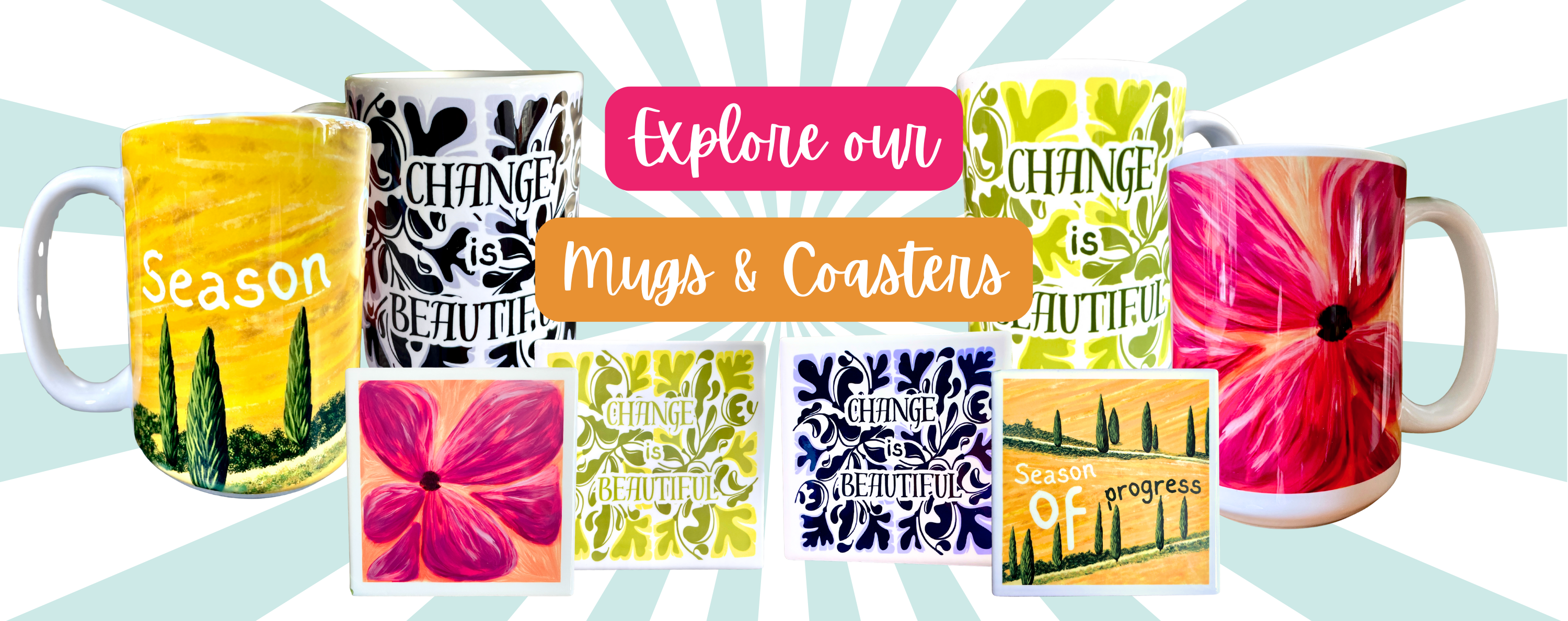 Our hand-illustrated ceramic mugs blend charm with everyday use, enhancing your sipping experience. Top that with our collection of coasters and you'll have a memorable time. Art is not just to be admired, it is to be enjoyed in everyday events. That is our aim, and hopefully we are on the right path.